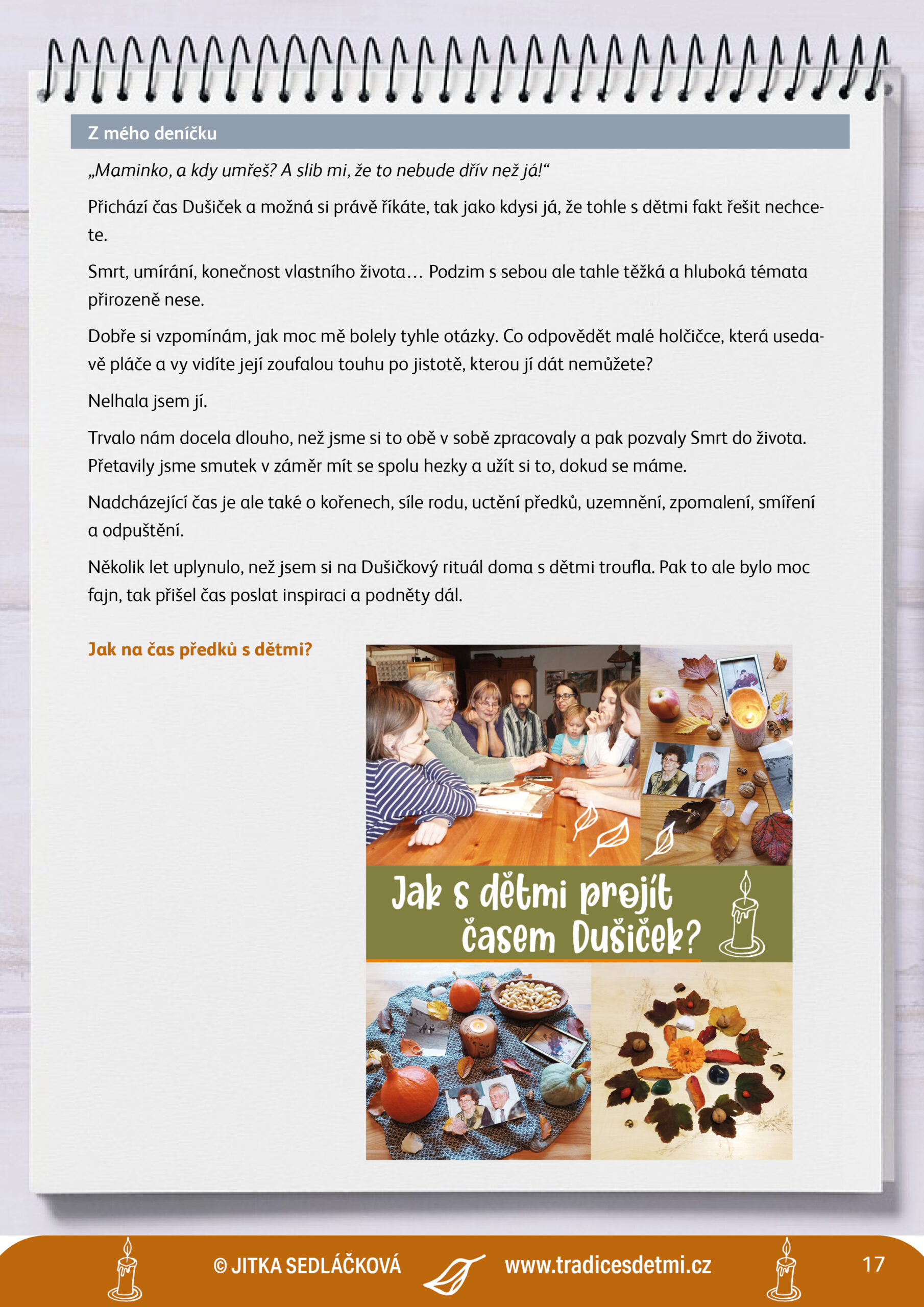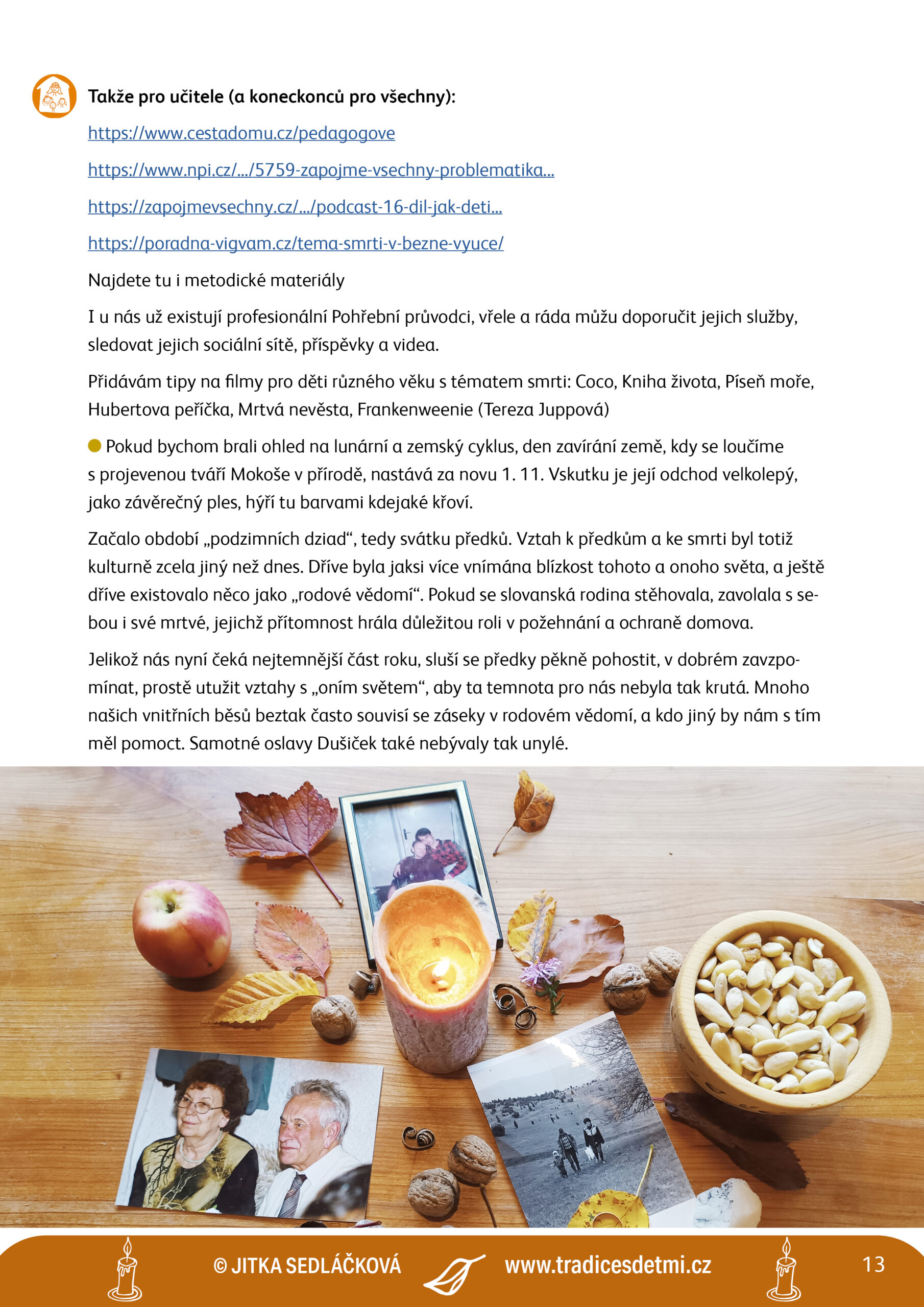 Na základě zkušeností z lesní školky, komunitní školy a výchovy našich 4 dětí, vytvářím jedinečné materiály, kde propojuji tradice a koloběh roku s praktickými potřebami současných dětí, rodičů a pedagogů.
